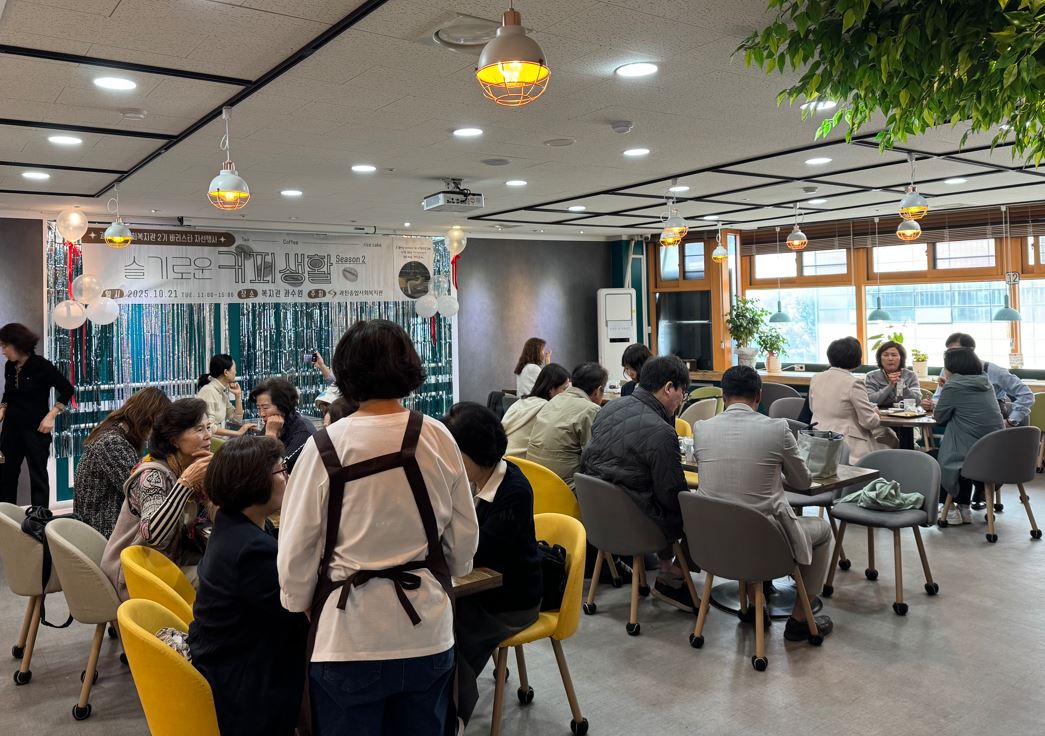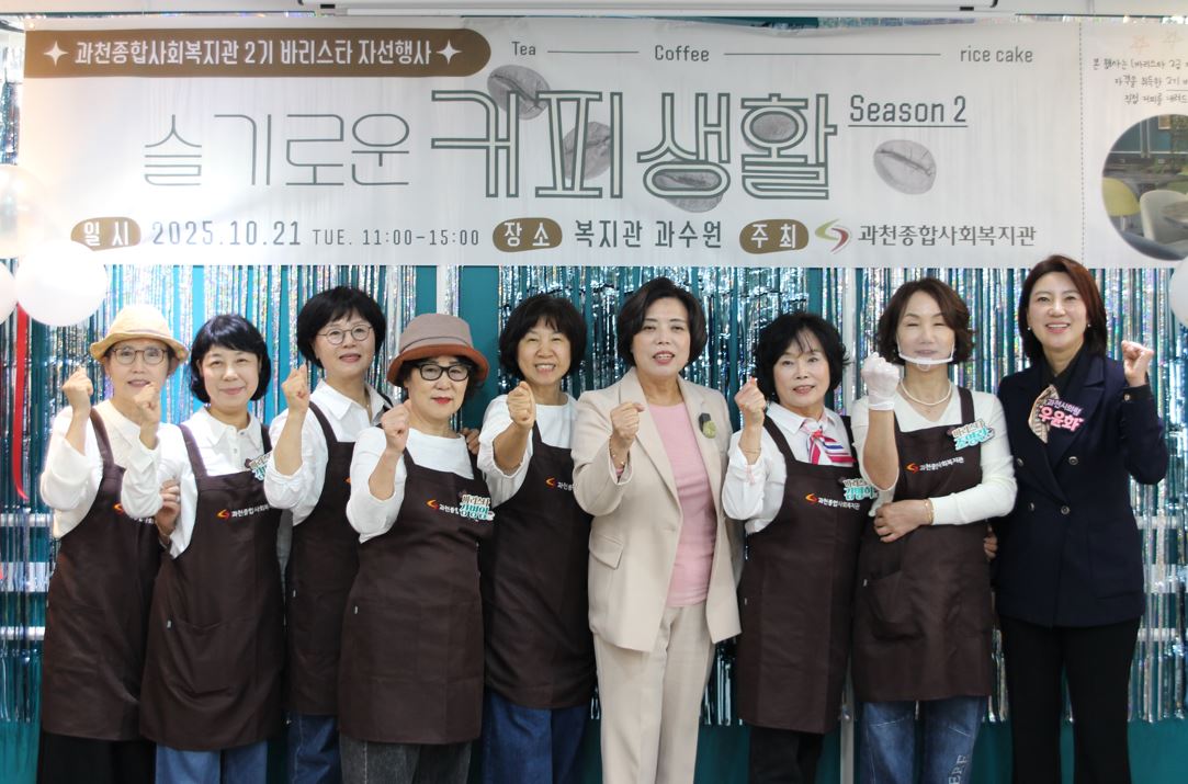지난 10월 21일(화), 과천종합사회복지관 ‘과수원’에서 바리스타 자선행사「슬기로운 커피생활 Season 2」가 열렸습니다. 이번 행사는 복지관 바리스타 교육 2기 수료생들이 주축이 되어 직접 기획하고 준비한 자리로, 지역주민과 봉사자 등 약 130여 명이 함께해 향긋한 커피 향과 따뜻한 마음이 가득한 하루가 되었습니다. 행사 현장에서는 바리스타 봉사자들이 직접 내린 커피와 차, 정성껏 준비한 떡 세트를 판매했으며, 판매 수익금은 취약계층 가정의 김장김치 지원사업비로 사용될 예정입니다. 작은 한 잔의 커피가 누군가의 겨울을 따뜻하게 덮을 수 있다는 사실에 참여자 모두가 미소로 마음을 나누었습니다. :) 2기 바리스타들은 2023년 9월부터 11월까지 바리스타 자격증 과정을 수료하고 2급 자격을 취득한 봉사자들로 구성되어 있습니다. 현재는 복지관 카페 ‘과수원’에서 주 1회 정기 봉사를 이어가며, 복지관의 주요 행사와 지역축제에서도 활발히 활동하고 있습니다. 이날 행사에는 신계용 과천시장과 김진웅·우윤화 시의원 등 여러 지역 인사들이 함께해 바리스타 봉사자들의 따뜻한 나눔 실천을 응원해주셨습니다. 올해 1월 진행된「슬기로운 커피생활 Season 1」에 이어 열린 이번 행사는 바리스타 봉사자들의 재능 나눔이 일회성이 아닌 지속적인 사회공헌 활동으로 이어지고 있음을 보여주었습니다. 앞으로도 과천종합사회복지관은 주민과 함께 만드는 따뜻한 나눔 문화 확산을 위해 계속해서 노력하겠습니다. ♥ 문의: 02)507-6319 지역조직팀 정연수 주임 |