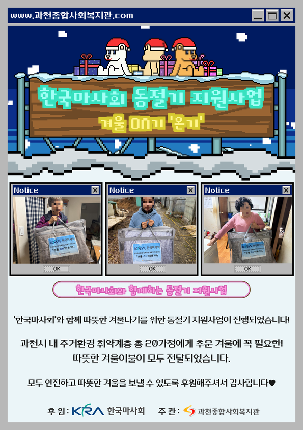 과천종합사회복지관에서는 '한국마사회'와 함께하는 동절기 지원사업이 진행되었습니다.
