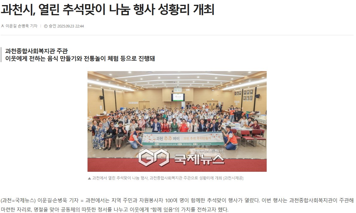 과천시, 열린 추석맞이 나눔 행사 성황리 개최