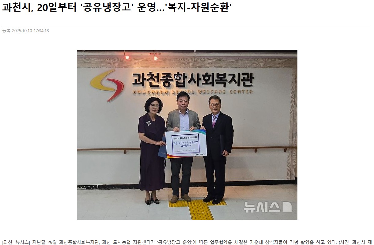 과천시, 20일부터 '공유냉장고' 운영…'복지-자원순환'