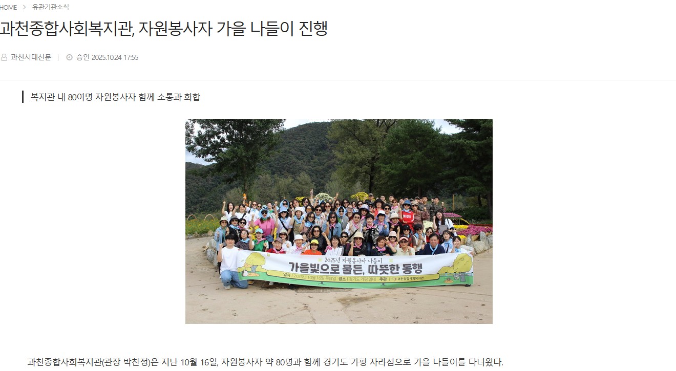 과천종합사회복지관, 자원봉사자 가을 나들이 진행