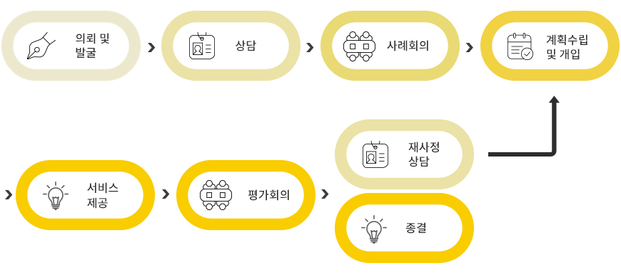 | 사례관리 | 사례관리 | 복합적이고 다양한 욕구를 가진 클라이언트를 대상으로 체계적인 사정과 지역 내 다양한 복지자원을 활용한 맞춤서비스를 제공하여 대상 가정의 삶의 질 향상 도모 |